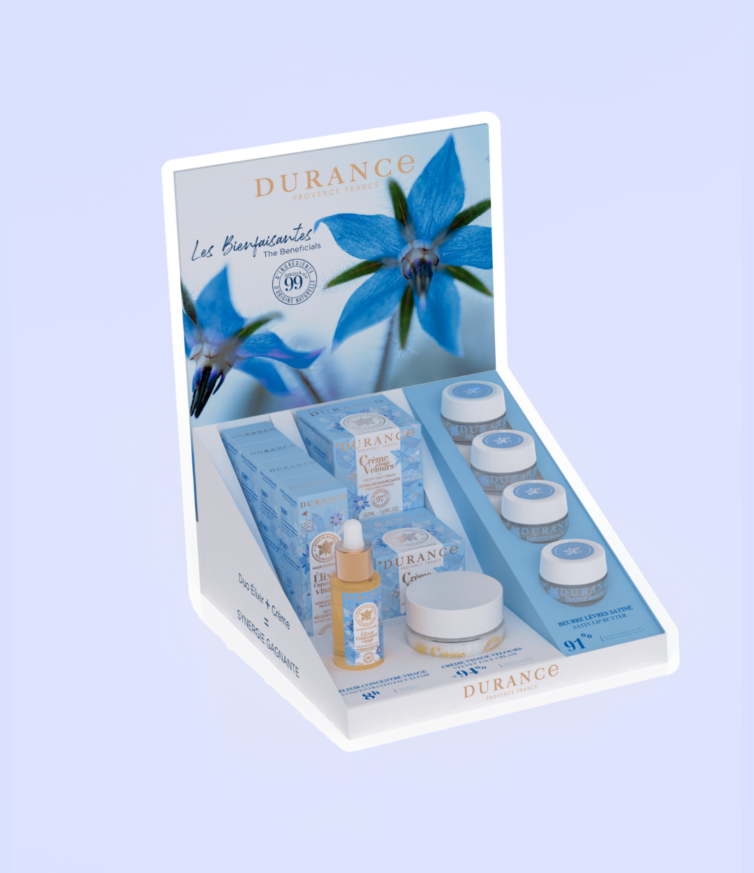 Une mise en valeur délicate et épurée, pensée pour sublimer les soins visage Les Bienfaisantes. Ce présentoir élégant reflète la pureté et la naturalité de la gamme, tout en offrant une visibilité optimale en point de vente.