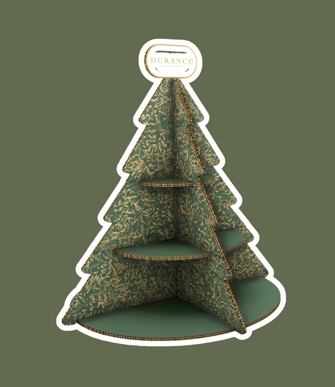 Un sapin majestueux au design végétal et poétique, imaginé pour incarner la magie d’un Noël naturel et élégant. Véritable centre visuel, il habille l’espace de vente et plonge les visiteurs dans l’univers enchanteur de Durance.